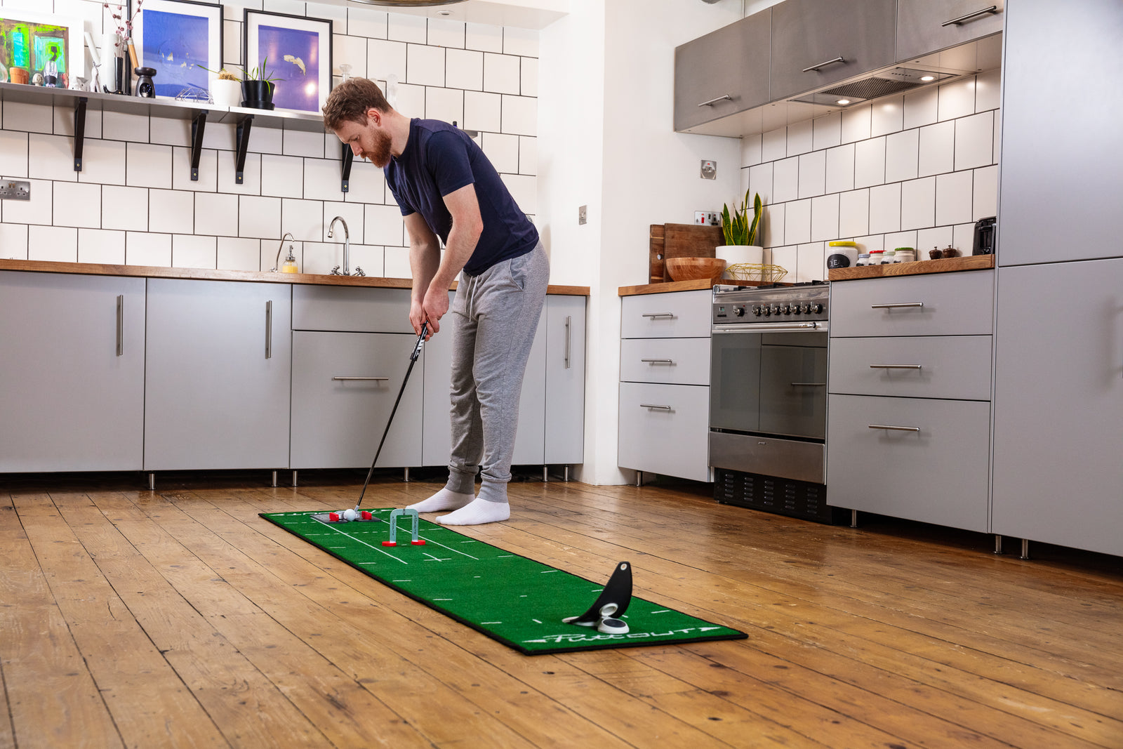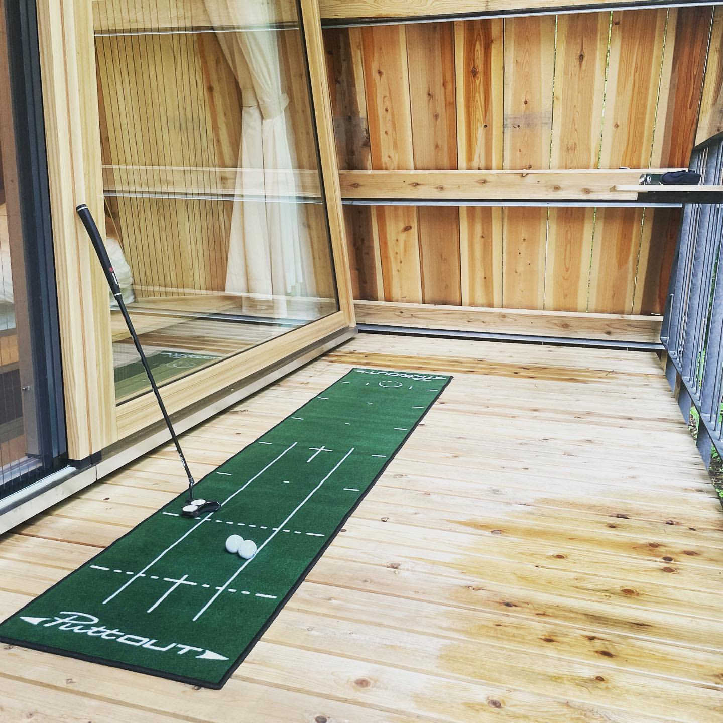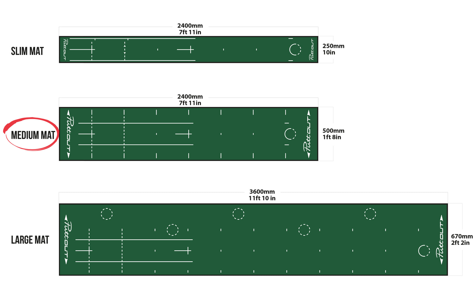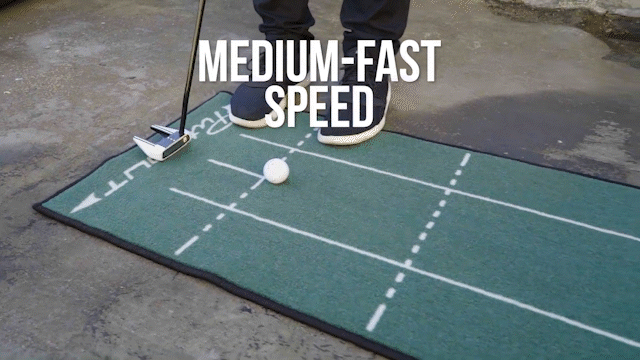 PuttOUTのパターマットはスティンプメーター10で設定されており、コースにいなくても、中速から高速のグリーンで練習することができます。
