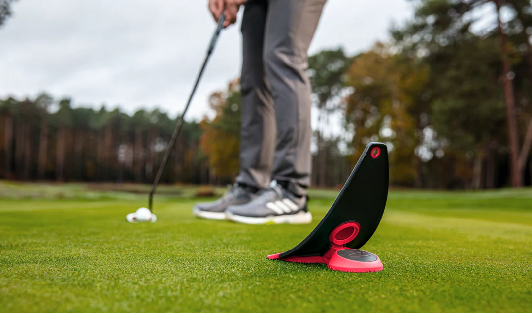 なかなかカップで練習できない時に、パットトレーナーを持っていくだけで簡単にパッティングの調整ができます。